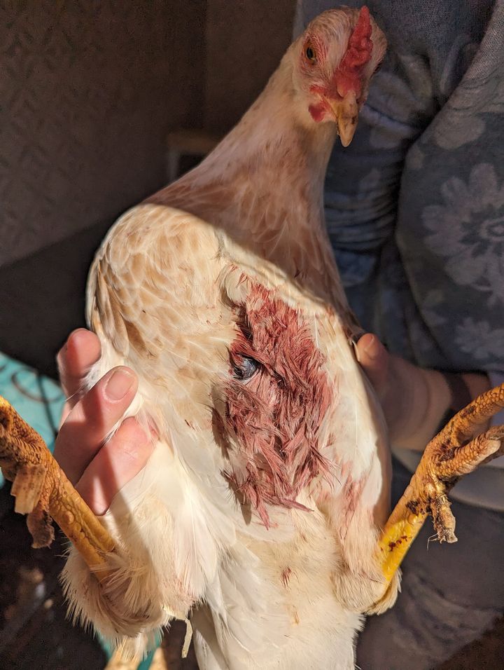 This chicken was attacked by a dog about a week ago. Is this healing? Infected? – Sarah Rachel