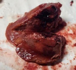 • Liver was very obviously damaged and hemorrhaging. Difficult to remove as it was falling apart