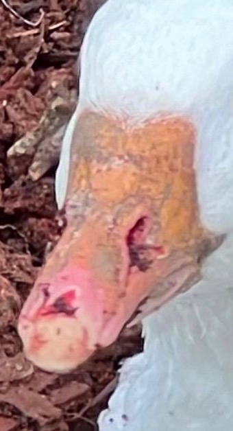 My goose was attacked by a raven while sitting on an egg this morning. What should I do to medicate her beak? I’m shocked and wouldn’t have guessed this could happen but I watched it happen as I was running out there. I have moved her to prevent additional attacks. – Catherine Christian