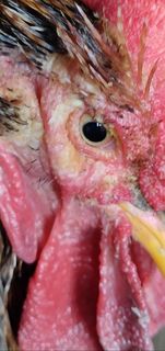 My rooster has yellow hard scabs around the eye, ear, on the top of the head, near the beak, even on the upper eyelid. The skin under the scab is cracked and very irritated. He is in pain, can’t eat and scratches a lot. Two months ago I gave him Ivermectin orally 0.2mg/kg and most of the scabs fell off. He received the same dose of Ivermectin two more times, ten days apart. A month after the last dose, he began to itch again and the scabs reappeared. I tried Monistat cream for seven days and it didn’t work any better. I’m guessing it’s not a fungus. – Marko Milinkovic