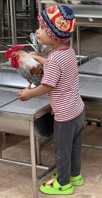 Despite the fact that chickens are something Cambodians have or see every day, the most common question is, “How can a chicken be so like a dog?”, meaning a pet. Angel doesn’t like any of our other chickens, but he has no fear of any human that wants to touch him or pick him up. A young Cambodian child that met Angel and was able to pick him up and cried when we had to leave.