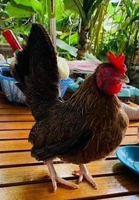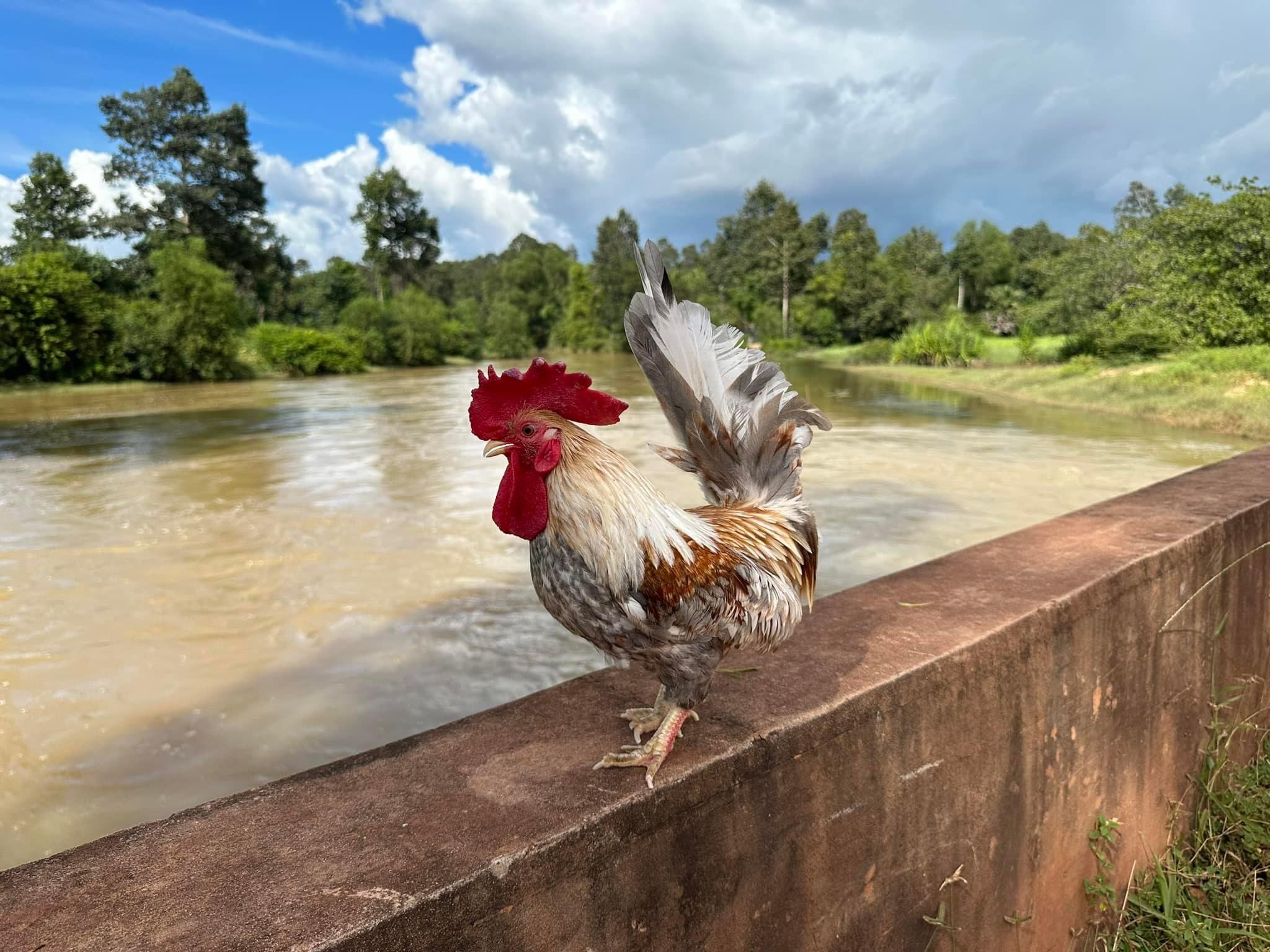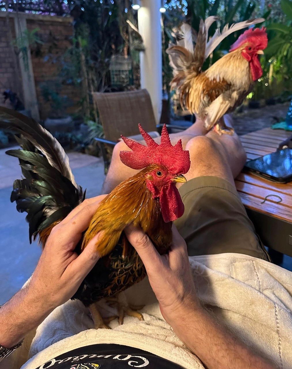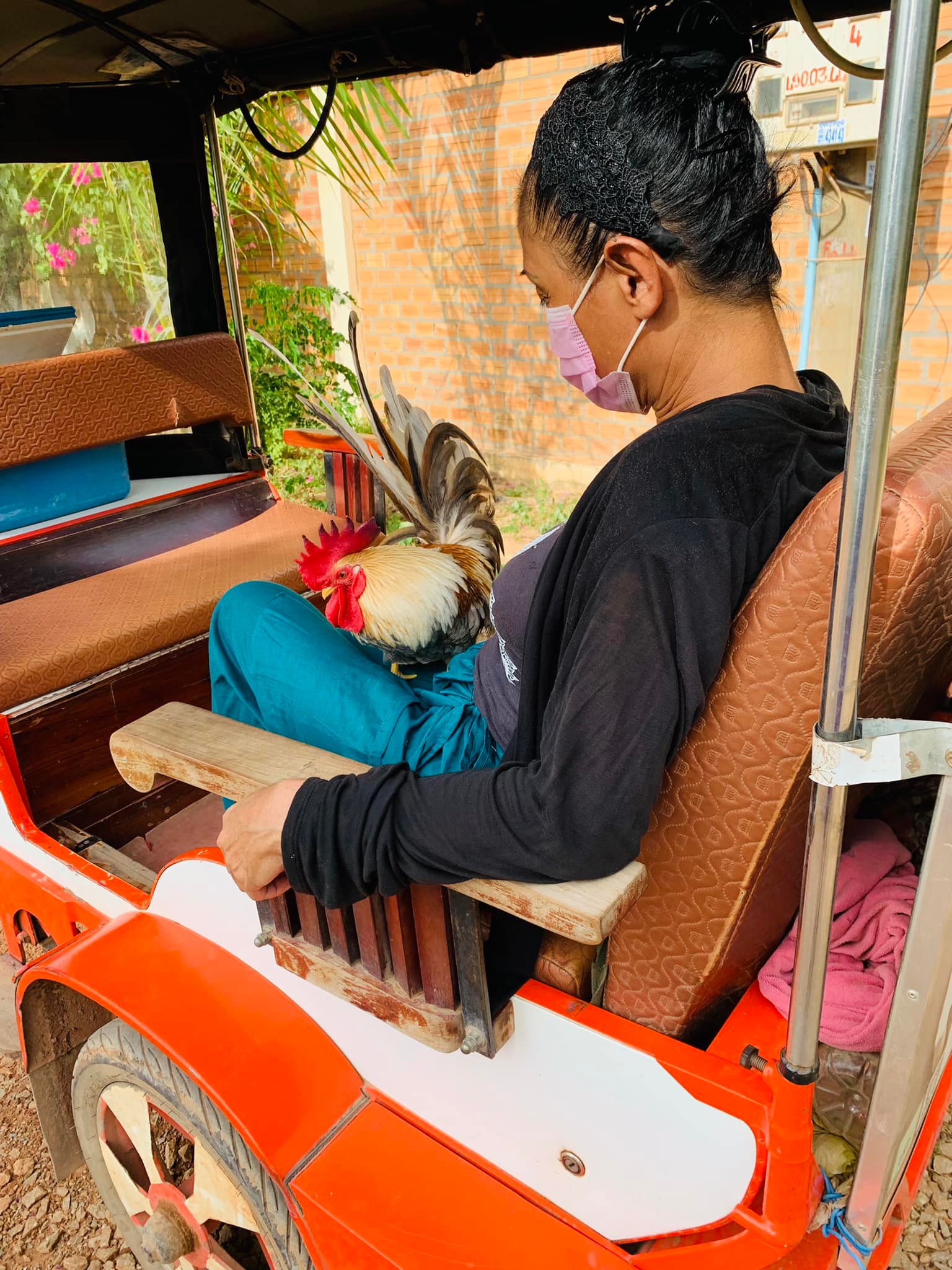 In 2020 we bought some Japanese bantam chickens. From a small flock it grew to 17 chickens a couple years later. These chickens are not common in Cambodia and we gave away a rooster or hen several times to people we thought would appreciate them as non-meat birds. I deeply regret doing that. In the case of Gangster, we finally had to demand my wife’s brother bring that rooster back to us.