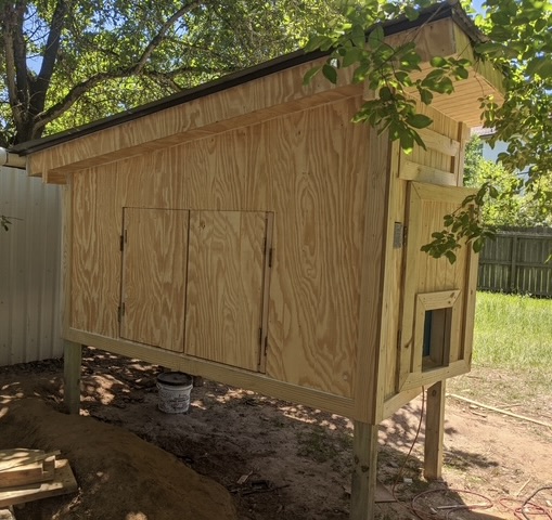 I build a lot of stuff around my house and after retiring from 37 years as an on-air TV Sports Anchor at the CBS affiliate (KBTX) in Bryan, Texas, I now tinker around as a handyman. This is my first coop build. I researched online a lot and remembered different things that my grandparents, who were professional chicken egg farmers in the Missouri Ozarks, shared with me. My grandpa Ernie had two huge hen houses that each probably housed 250 – 500 hens each and then a brooder house for raising chicks.
