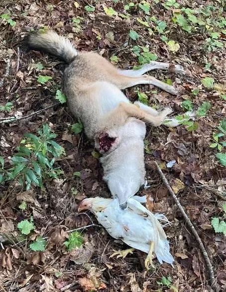 “We found a cute puppy in our coop. He’s not very nice but free to a good home. My kid had to pull a chicken out of her mouth. The hen is fine just missing a few feathers.” – Clay Groves