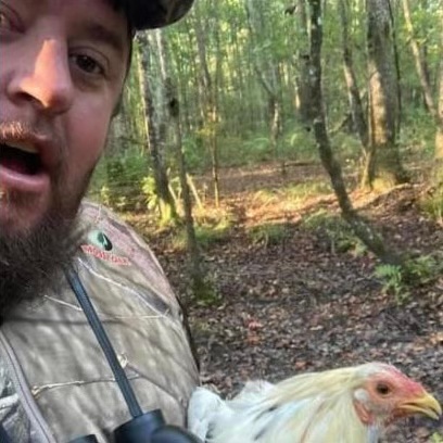 This was a first for me. I woke up early to climb in the tree stand to get me a deer. I guess a coyote with a chicken in his mouth is what was planned for me. The amazing part is the chicken is still alive now, a little sore but I’m sure this little rooster will make it. – Corey Blackmon