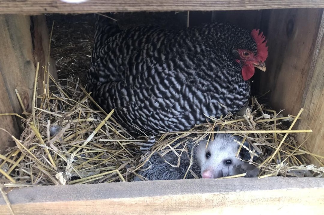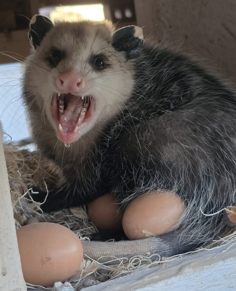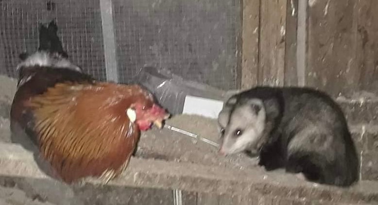 Meeting an opossum in the coop: adrenalin booster for sure. Don’t wish to have another anytime soon or perhaps never again! – Cheryl Lee