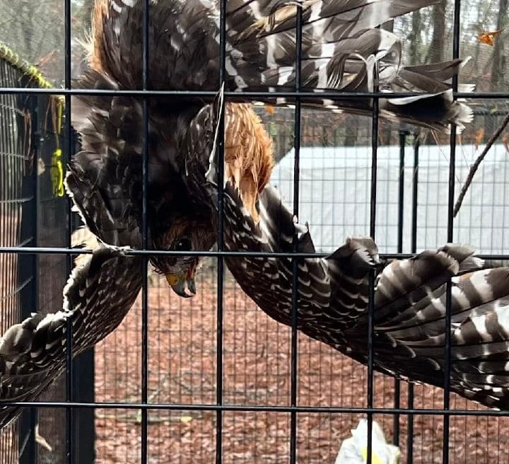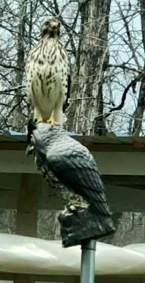 Over 15 years I’ve had about ten birds lost to hawks. The first two happened when my flock free-ranged, while the others occurred when they were penned. Over time, I have been more vigilant and now the whole top of their two pens (30’x40′ and 15’x30′) are covered with deer netting. Even so, one hawk has been especially persistent lately. I’ve spotted it once, sometimes twice, a day perched in a tree on the perimeter of the pen trying to find a way in. I’m pretty confident that my enclosure is safe, but I do regular inspections to ensure the netting is tightly secured. – Bitchin’ Chickens