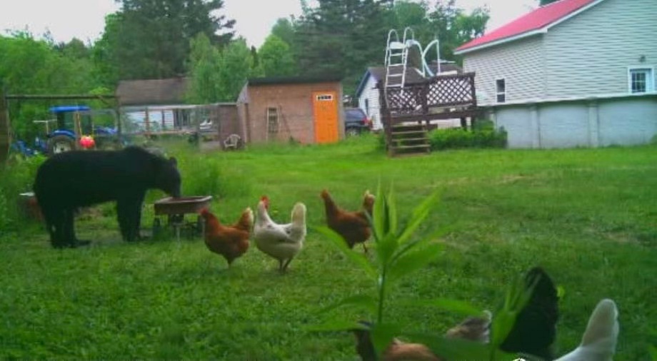 It appears bears can be both destructive and disinterested in chickens.