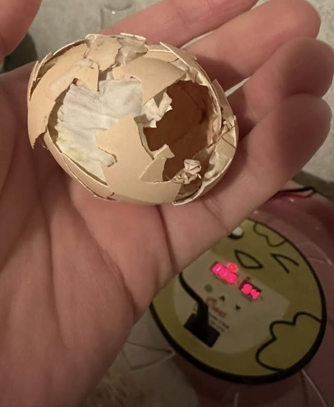It was day 22 and time to see if I could help. I tackled the egg with the pip first which wasn’t all the way through the shell. I heated a paper towel and wrapped the egg and held it under a heat lamp and started picking away some of the shell. I immediately hit a vein and blood started gushing, so I apologized to the living beak I saw and put her back in the incubator. I thought I had possibly, even probably, killed her.