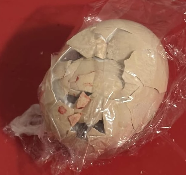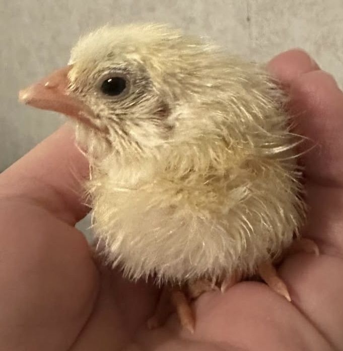 This is wild! The incubator lid slid out of my hands and crushed this poor egg about five days before hatch date. I was heartbroken and felt terrible. In an effort to keep it alive, I put candle wax on the break in the membrane and then wrapped it in Saran wrap in the hope of retaining some moisture. Today the little one hatched. I’m shocked and thrilled and grateful she survived! Life, uh.. finds a way. – Heather Nash