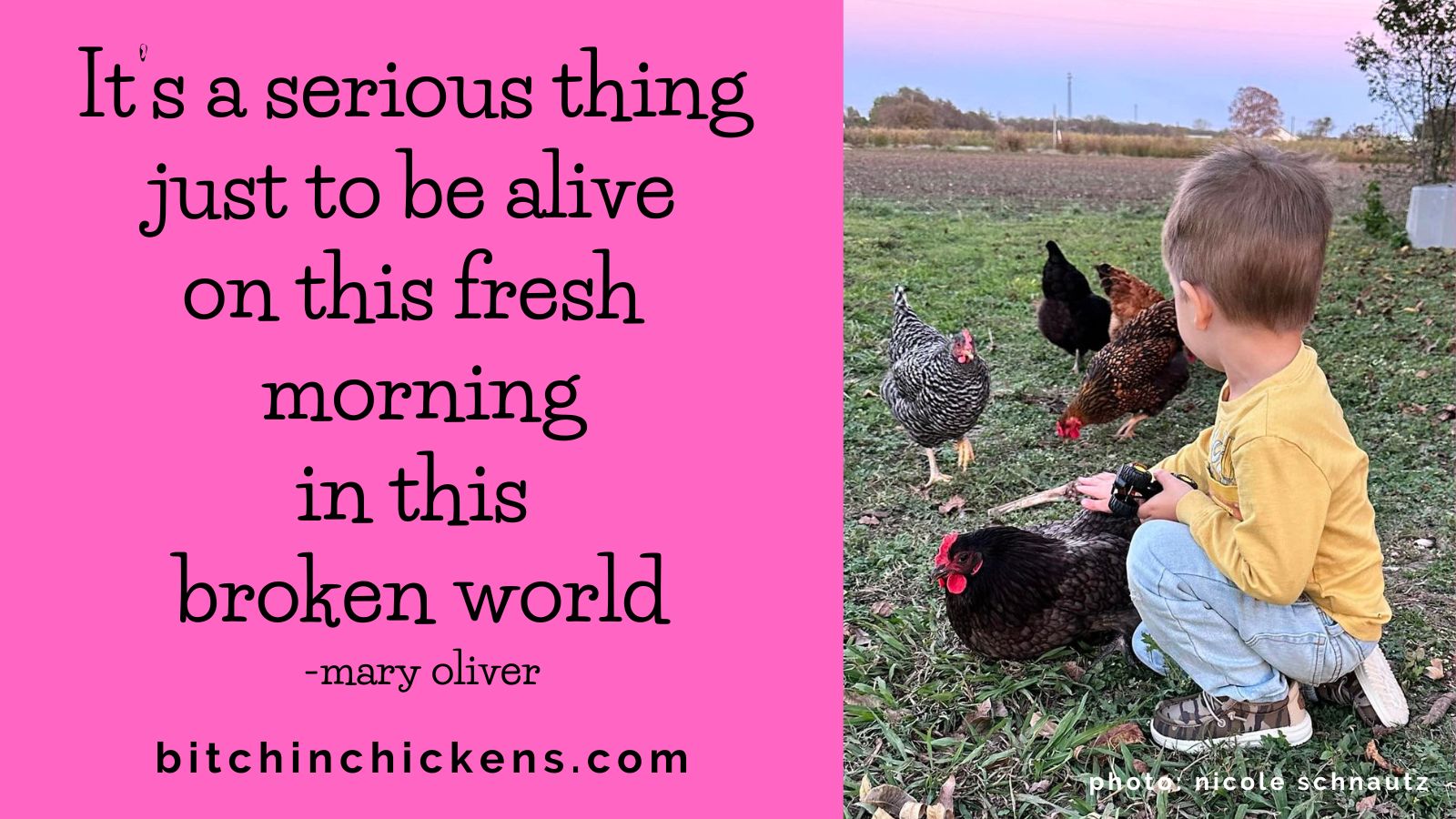 Regardless of your political affiliation you can’t avoid feeling that the world is going through an unprecedented shake up. I know chickens don’t deal well with change and neither do people when it comes at such a rapid pace. The ground feels unstable and we may wonder what the future holds for us. That one is hard to predict but I hope that we’re able to hold on to our empathy and compassion and work together to make positive changes.