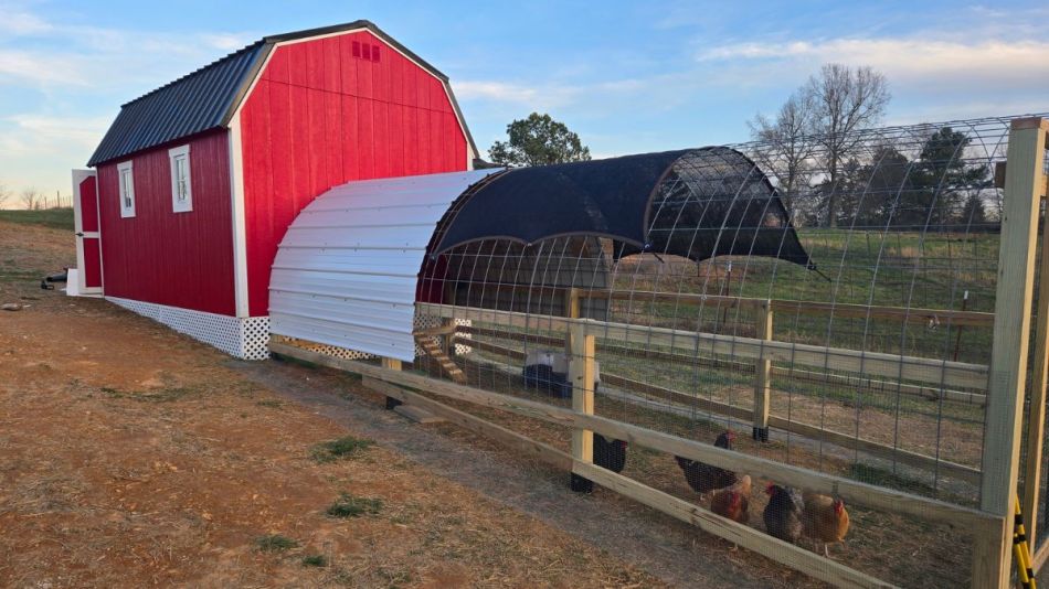 Shed: 10’x16’ Coop: 10’x8’ Run: 8’x20