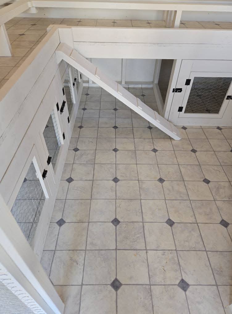 We had to be creative with the run because our land is very uneven. I found a hoop coop plan and my husband modified it to work. My main desire was that it be easy to clean and could be modified to add more hens. We added vinyl flooring, can change the roosts to ladder style and add onto the run, when needed.