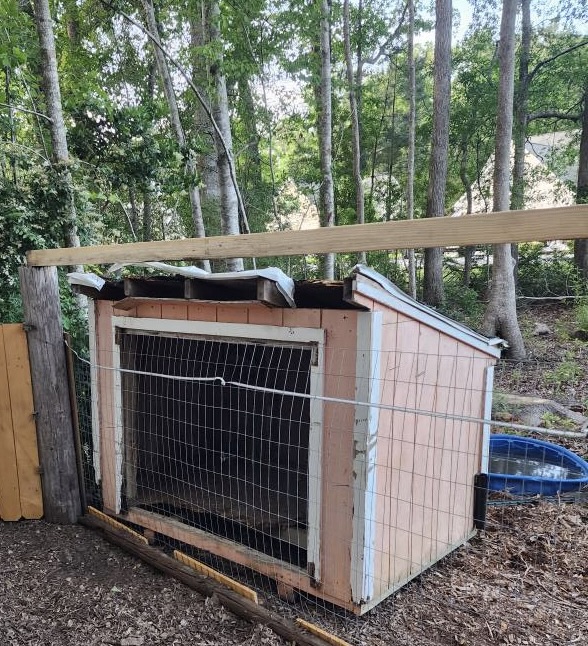 - Lean-to Piggy Palace where Petauxnya gets her beauty rest (and where the chickens have decided they want to lay)
