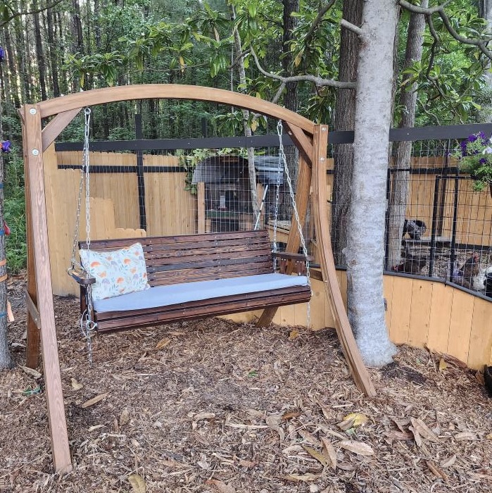 - Outside is a swing where I can sit in solitude and watch all my animals do their thing as well as an herb garden to help with pests.