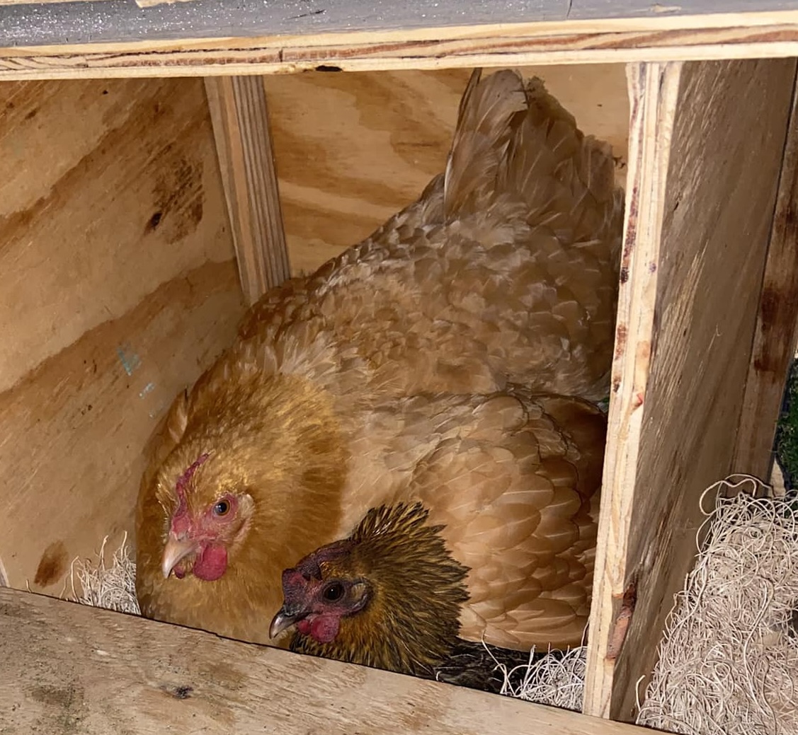We decided to let our Buff Orpington sit on her eggs and have some chicks when she became broody this time. Problem is, about six days into laying on her eggs our tiny little Kikikiri hen, Midget, went broody too. Now they’re both sitting on the same eggs. It’s weird because the Buff Orpington is putting her wing over Midget and they’re just going with it.- Jennifer Lopez
