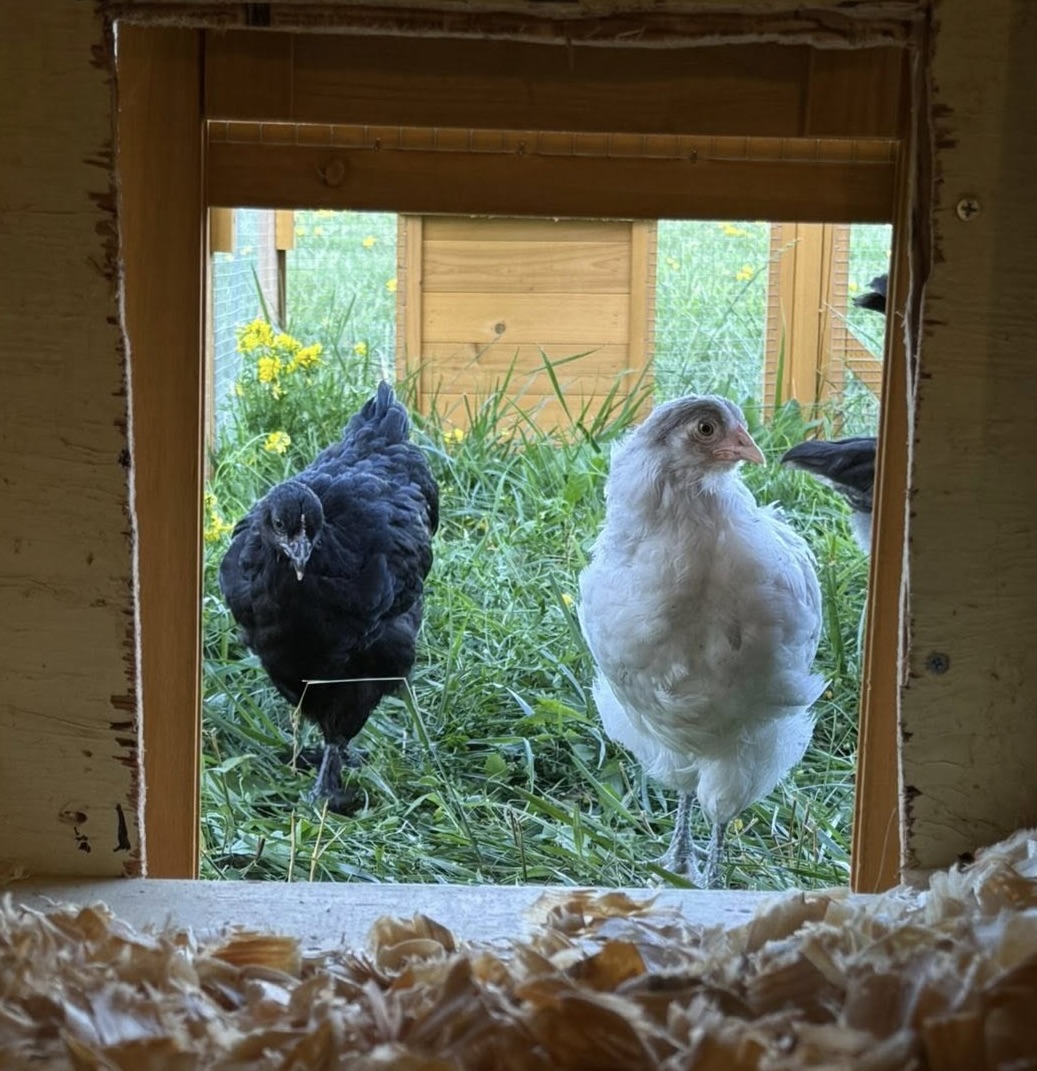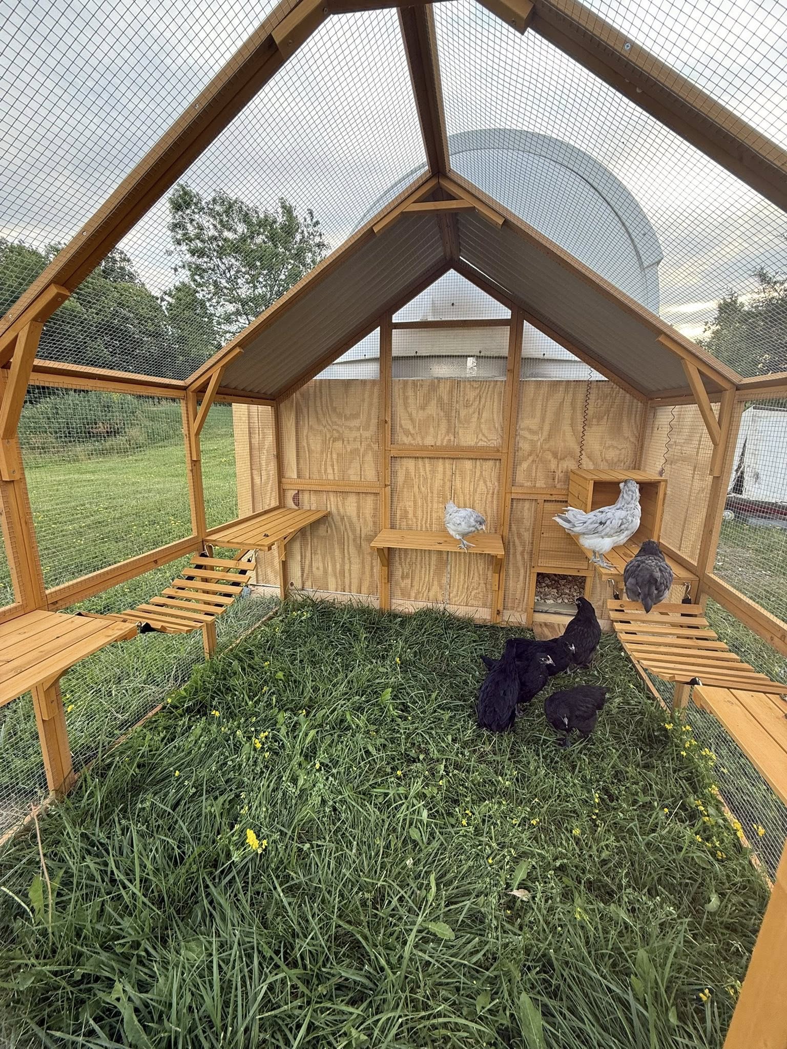 • A fence around the coop. It’s located a a few yards away from the bedroom door. I would love to go out in the morning and have coffee with the “space chicks”.
