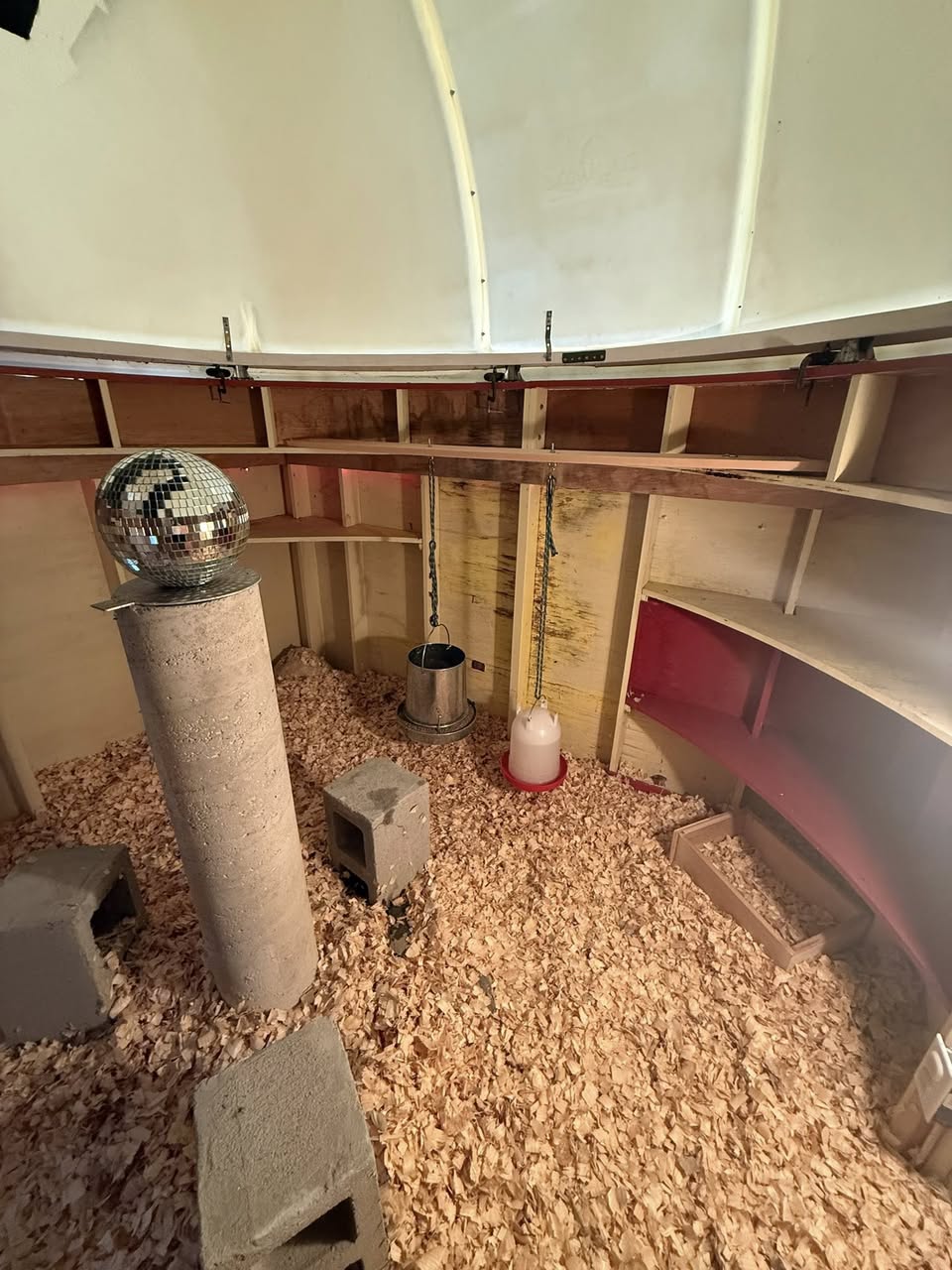 We acquired this observatory when we purchased our home a year ago. It wasn’t in the best shape and we’re not really into astronomy.  We also couldn’t afford the required equipment it would to use of it for its intended purposes. We were looking around for chicken coops and they were so expensive. I joined a few Facebook chicken-focused groups and posted a photo of the observatory asking the masses: “Can we/should we convert this?” and there was a huge and resounding “YES!” so we went for it.