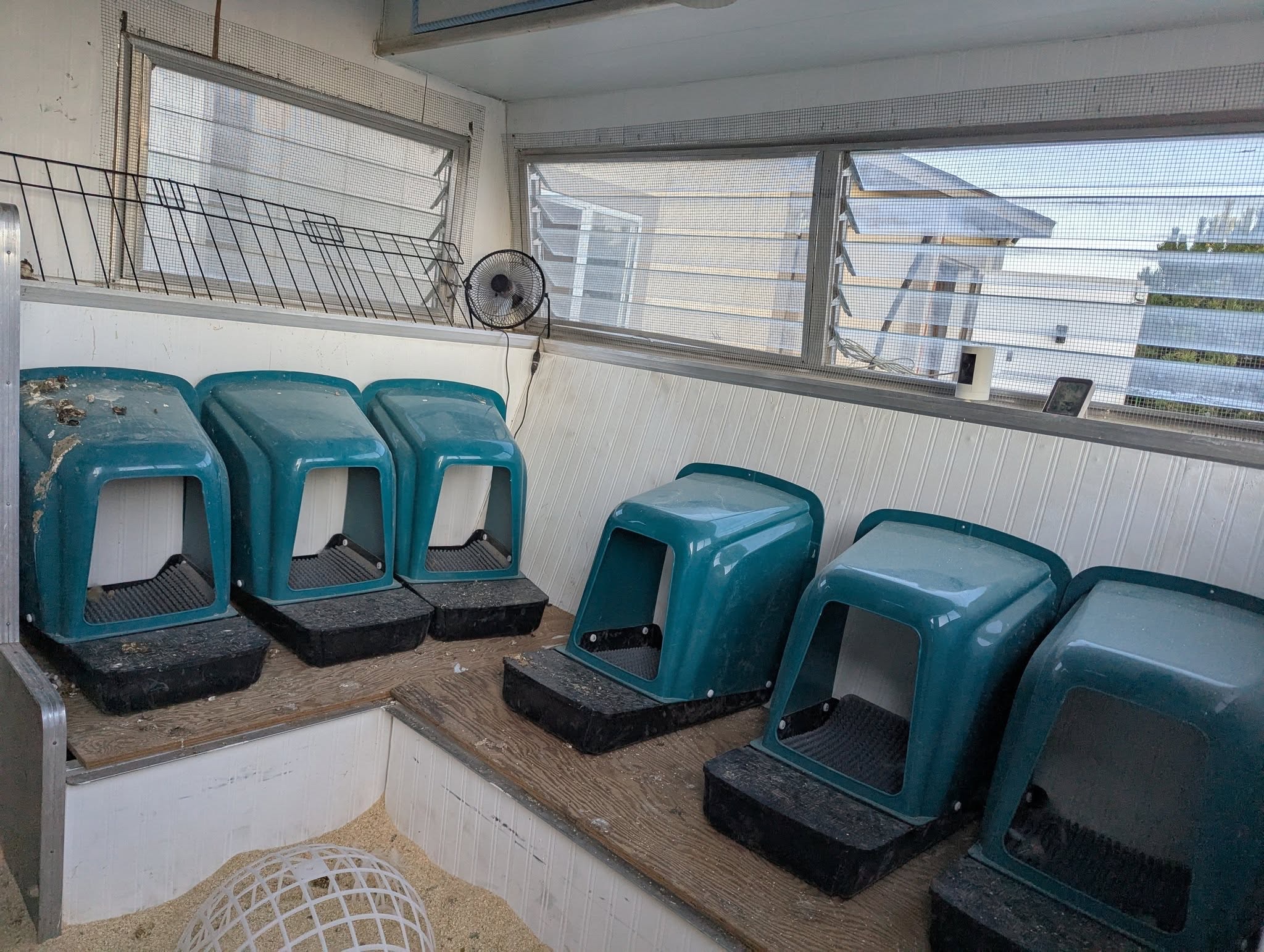 - Windows are reinforced with hardware cloth so they can stay open safely.