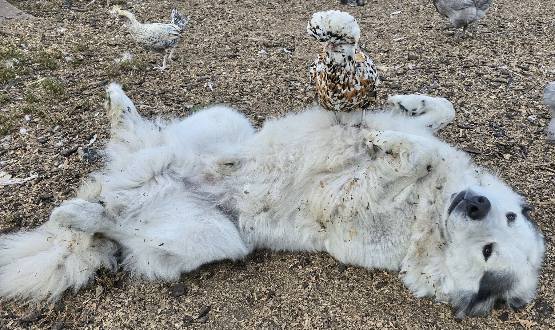 We have a chicken that is completely convinced it’s a cat. It refuses to go in the coop with all the other chickens, will only sleep with the cats, and eats only from the cat dish. Any suggestions on how to get her to at least go to the coop for food, water, and laying when the time comes? She’s so strange, hops on my shoulder anytime we go outside. – Megan Stewart