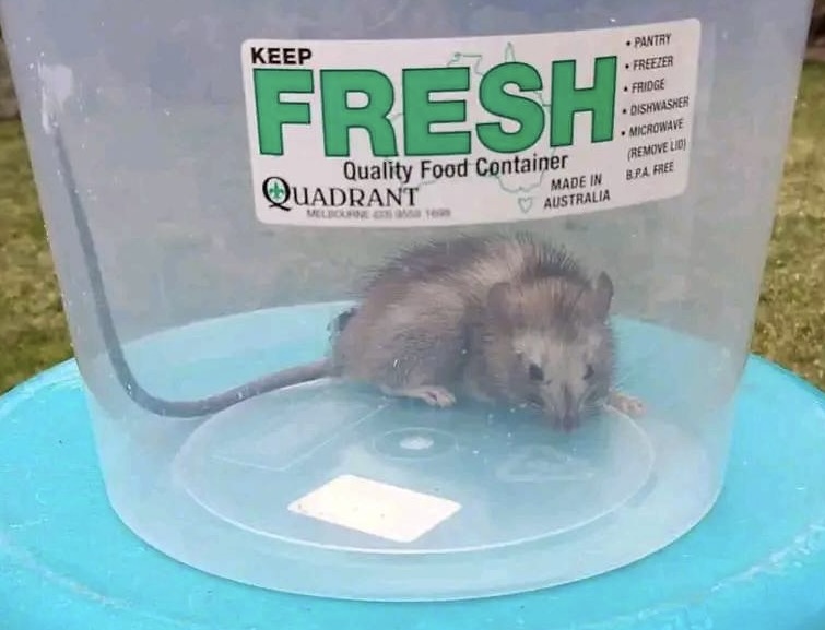 One morning in 2021 I looked out of my bedroom window and saw a very large rat. It was snacking on the birdseed I had foolishly sprinkled on the lawn the previous day. Cue panic, disgust, and a massive burst of motherly problem solving. I grabbed thick gloves, long tongs, and the largest plastic container I could find. Then we punched holes in the lid and captured Ratticus. He (or she) was surprisingly docile and possibly even friendly. It was only afterwards that I noticed the container’s hilarious“Keep Fresh” label.