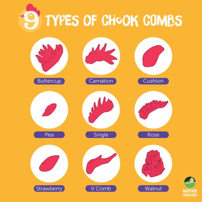 #4 Comb Genetics: Buttercup, carnation, cushion, pea, rose, single, strawberry, V and walnut.
