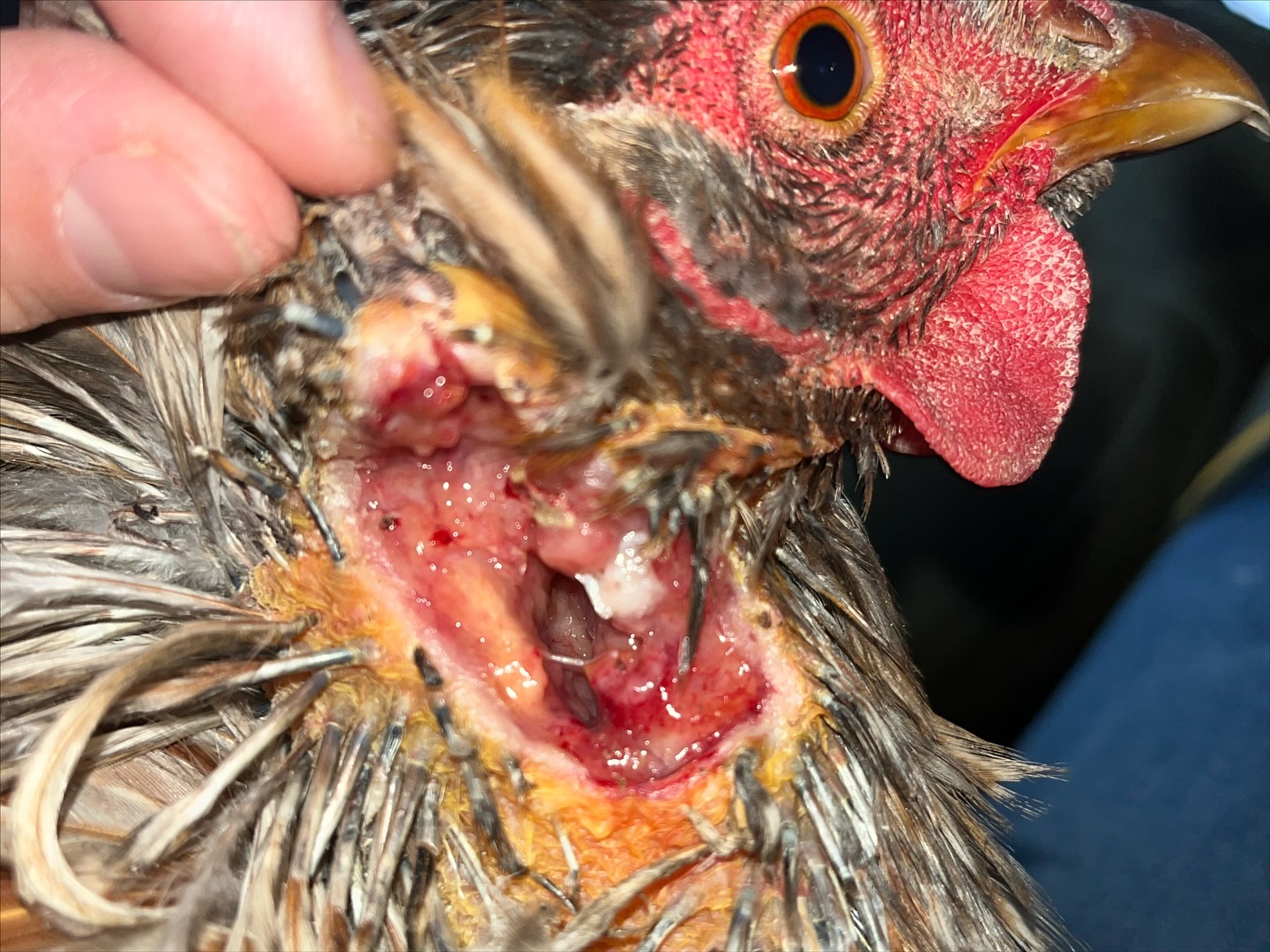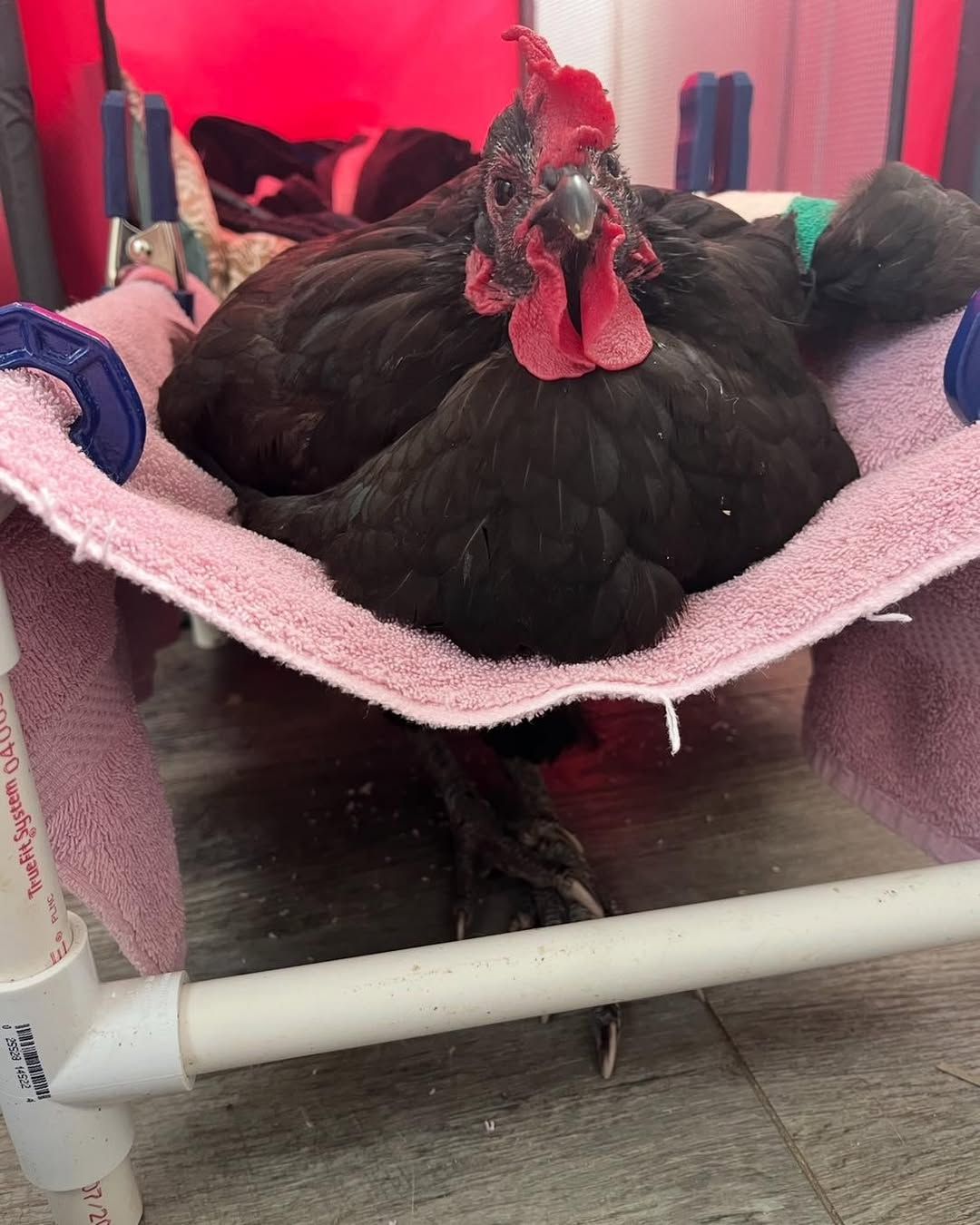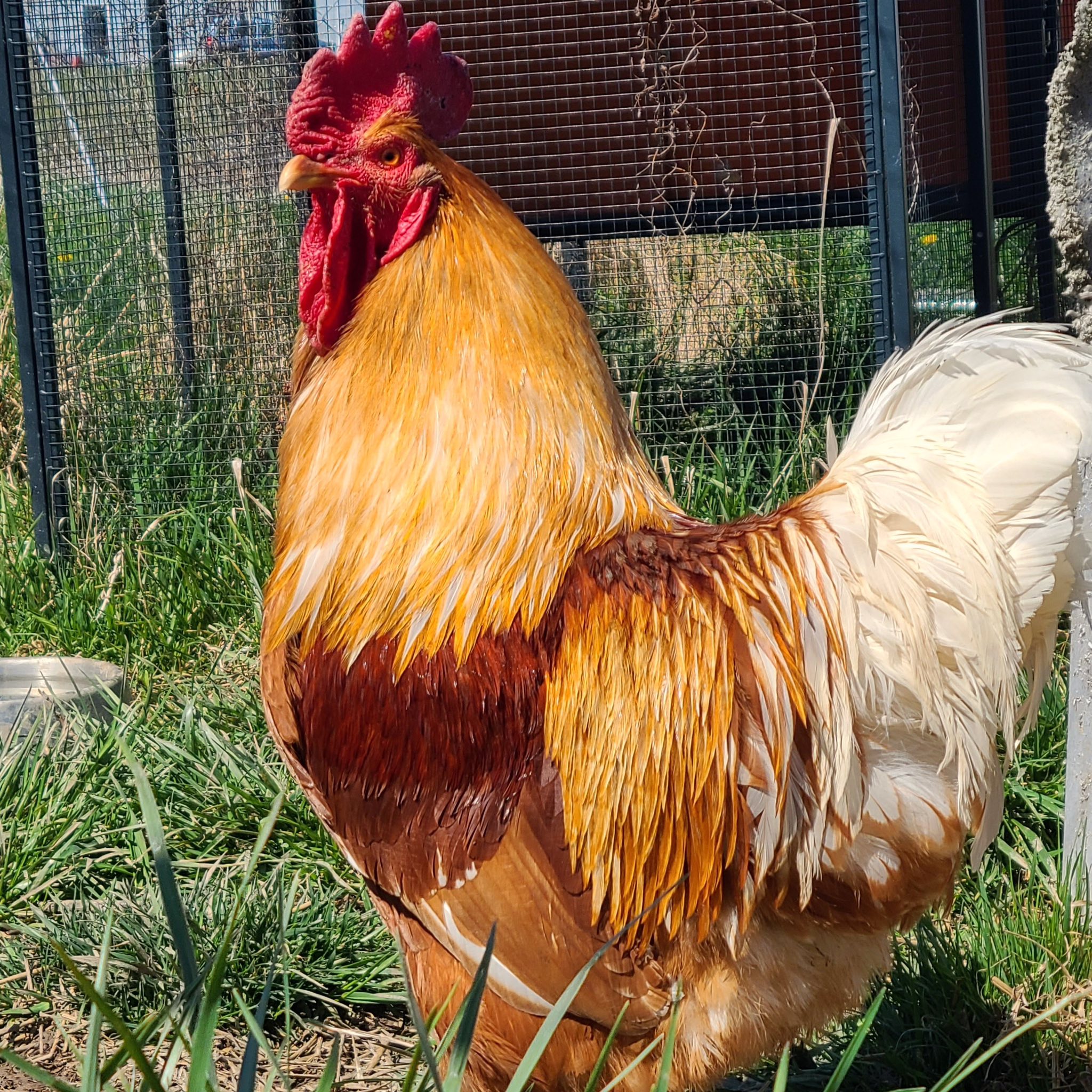 Finally a wonderful human heard about him and brought him inside while she looked for help. Thankfully we were able to take him and she got him directly to our vet. He lost most of his comb but is otherwise now safe and healthy. And he now has a girlfriend!