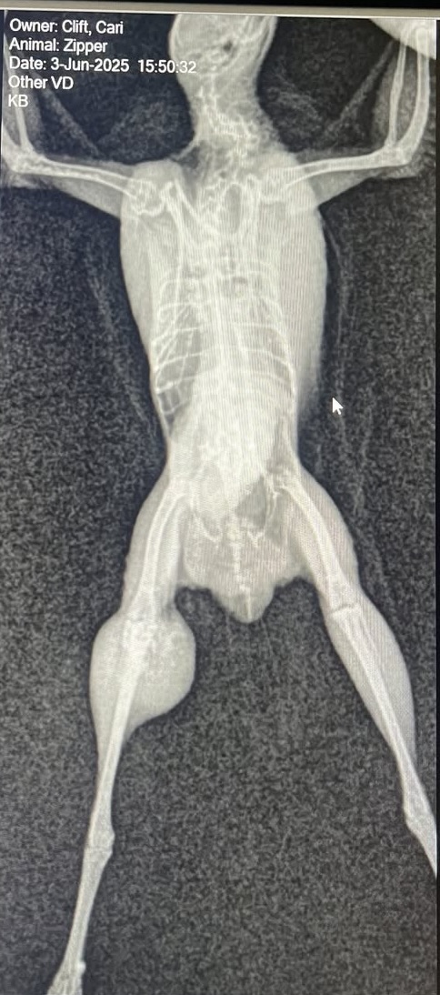 Then last week, his girlfriend, Buttons, started limping. X-rays revealed multiple fractures in both her knee, tibia and fibula. (We don’t have a clue how this happened!) We are trying to let hers heal on its own, but if it doesn’t, the leg will need to be amputated. She is the same age and the risks are similar for a surgery of this magnitude, but her prognosis is better because we don’t have to worry about getting clear margins.
