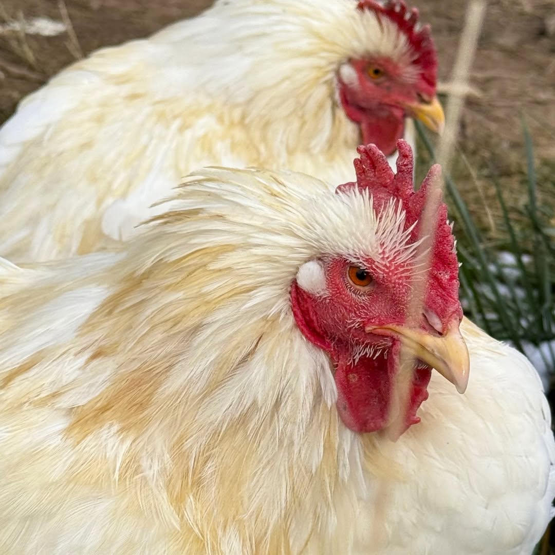 Simultaneously, I heard about a poultry farm in Colorado that was going out of business. Rescuers were allowed to come in and take as many Cornish Crosses as they wanted, and a small group agreed to triage and transport as many as they could find homes for. I signed up to take six roosters. They arrived around 1am on a cold night in the middle of January, 2019. I didn’t know a thing about chickens but I read as much as I could and texted the girl who had transported them to me for advice. I quickly fell in love and started taking more roosters who needed a safe place to go.Two of the original six are still here with us and will be seven years old in the next few weeks.