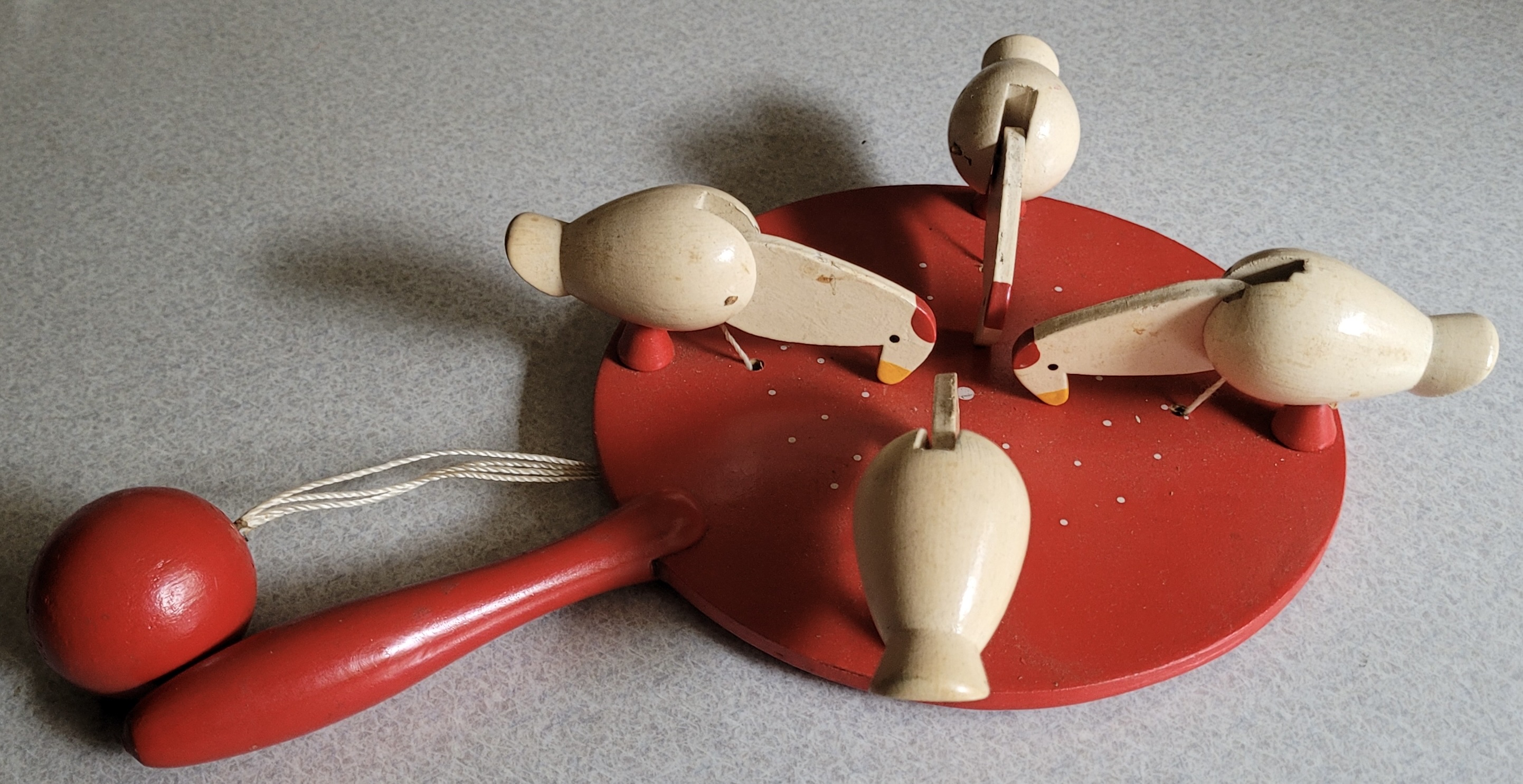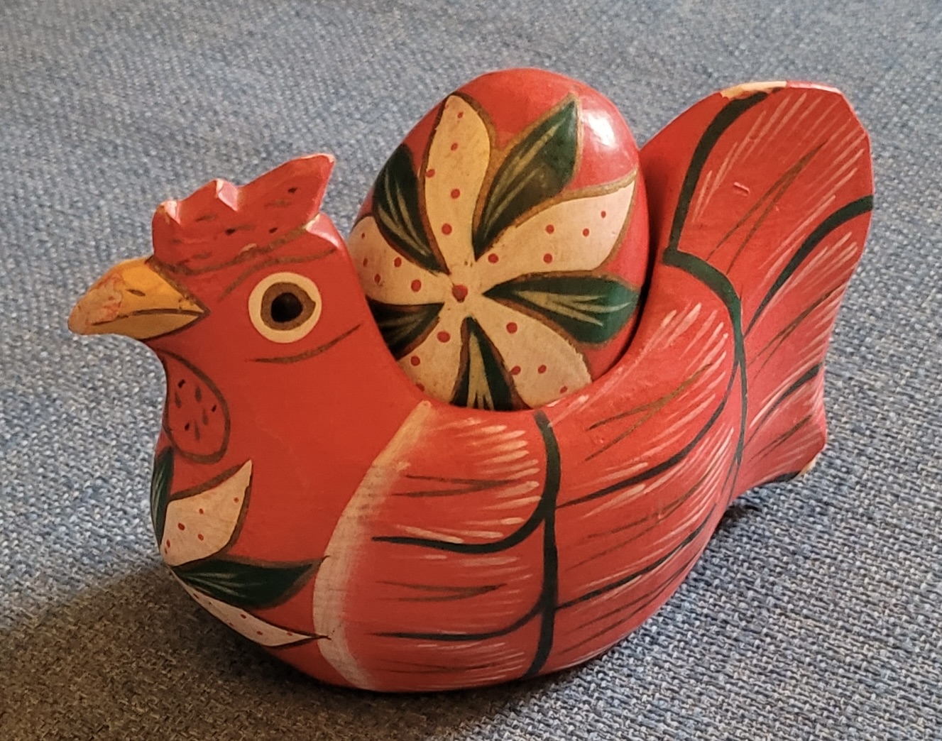 My mum brought me the four chickens toy back from Eastern Europe in the mid-1960s. I wish I still had it as it was much more ornate than the new ones (probably made in China).