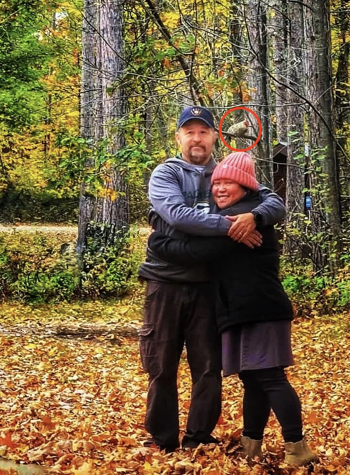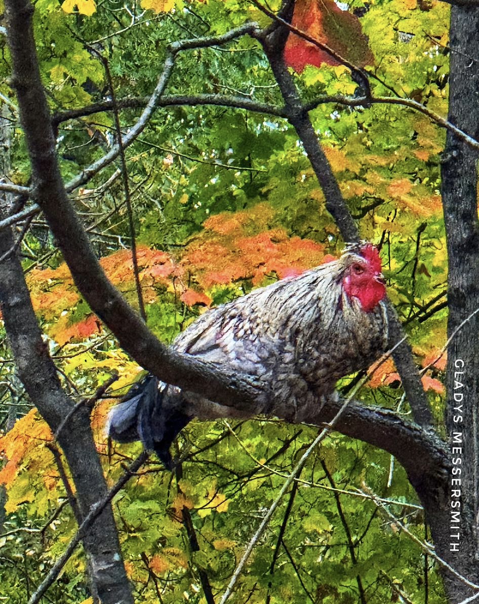 This mosaic was inspired by a chance encounter with a rooster perched among autumn branches at Bagley Rapids National Forest. That October afternoon, my husband and I posed for fall picture, unaware of the rooster on a branch behind us. No crowing, no fuss – just a silent witness to a beautiful surroundings a perfect moment. We didn’t see him until later, which somehow made the memory sweeter. A small surprise the forest kept for itself.