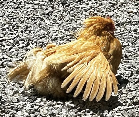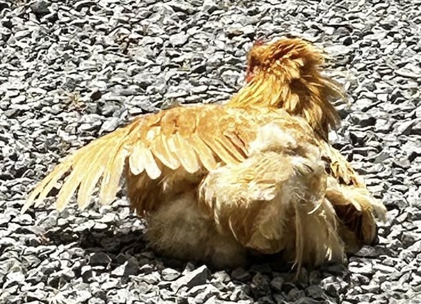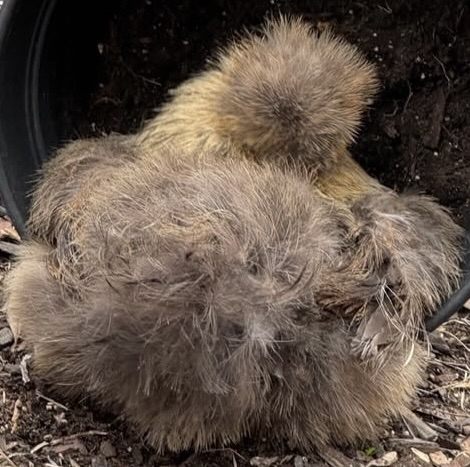 PLEASE, I’m begging you, please let Waffle borrow the one shared Silkie braincell. She’s been running on pure chaos fumes for weeks. At this point, I’m not sure if she knows which way is up, where her food is, or if she’s just vibing with the void. Her turn with the braincell was three chickens ago. I don’t know how much longer she can survive without a single, solitary spark of sense. She better be glad she’s cute. And yes, she did come inside to get blow dried, don’t worry. She’s very spoiled. – Whitney Threatt