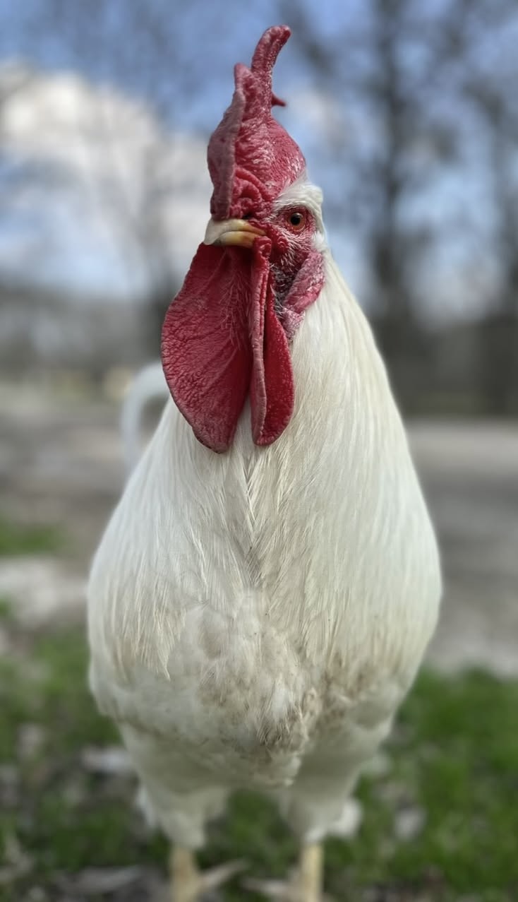 Thought my rooster was down, and I was scared to go look. So I zoomed in with my camera and saw this. False alarm. Mr. Mayor’s response: “Did you confuse me with trash?” – Amelia Acres