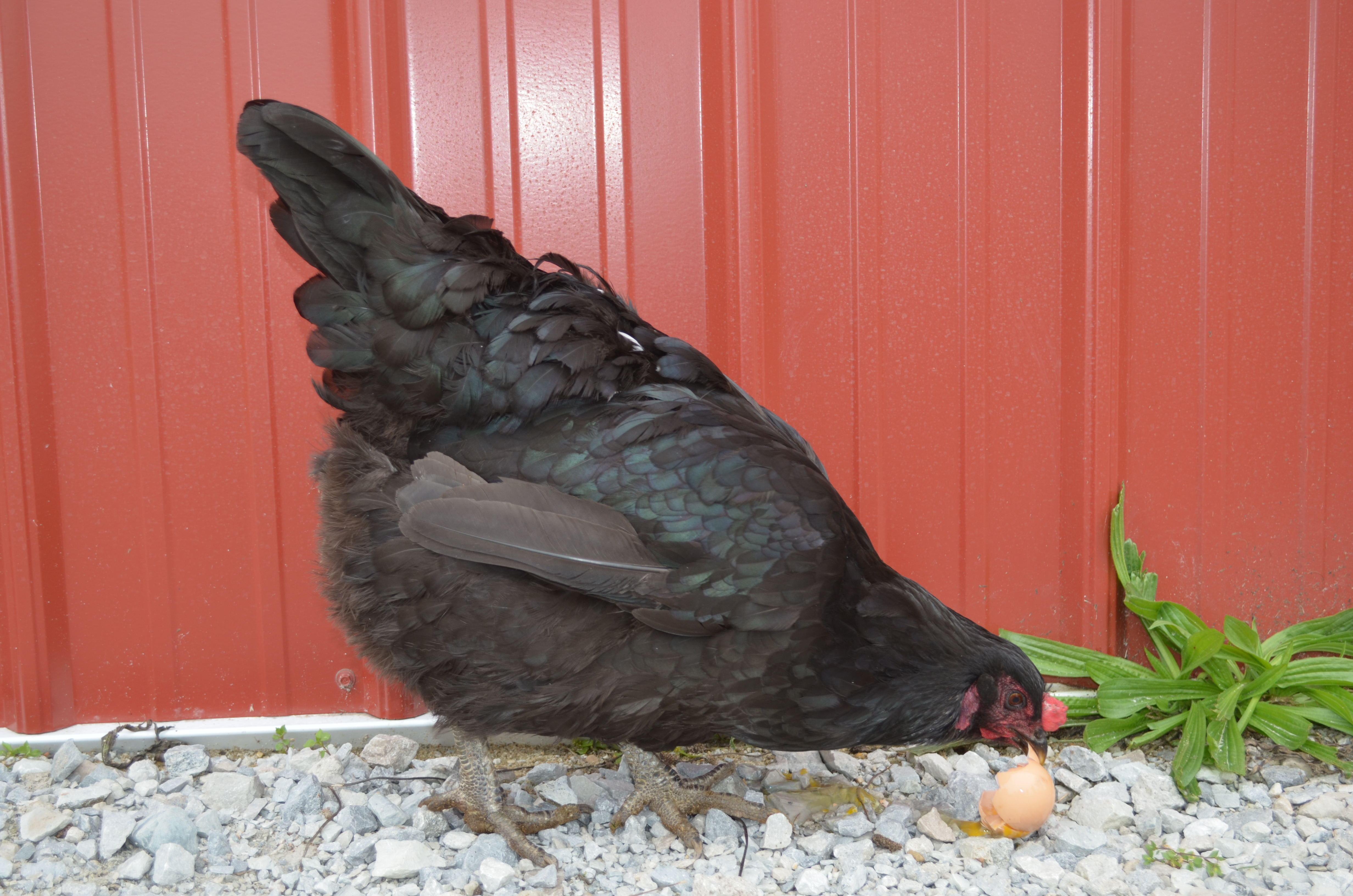 Before pointing an accusing finger confirm that your birds are actually eating their eggs. Rule out predators such as snakes, skunks and rats, first. Sometimes it may be just one hen that is the problem and it might take a bit of detective work to catch her in the act. Check the nest boxes for broken shells and remnants of the inside of eggs in the bedding. Look for dried yolk on beaks and feathers on your birds’ heads.