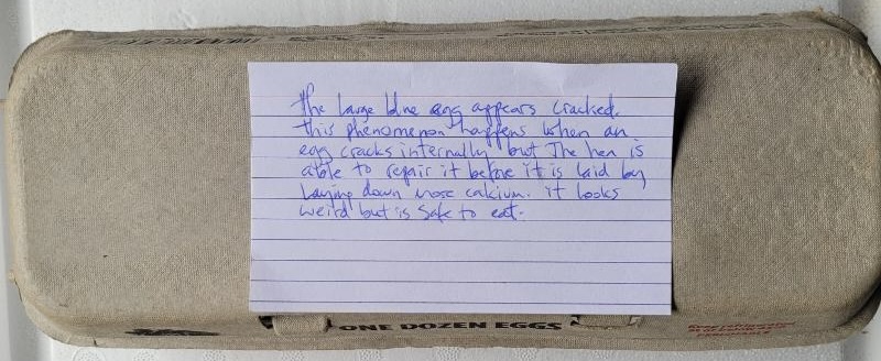 I’ve had to leave a little note on my egg carton so my customers don’t think they were duds.