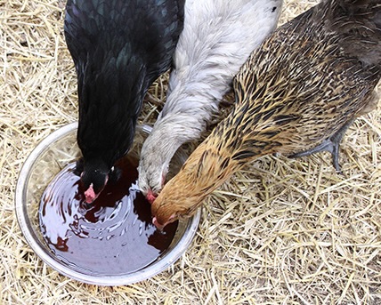 While chickens can taste bitter, sour, salty, and umami they lack receptors for sweet and spicy flavours. Adding a small amount of molasses to water may entice reluctant drinkers to rehydrate more out of novelty rather than motivated by their taste buds. Increased water intake is critical in hot weather or while recuperating from an illness or injury.