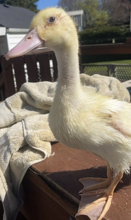I might have the worst poultry related injury that’s happened to anyone in a while. Little ducky was in their brooder and their buddy died so they were all alone. One week ago I woke up to her trying to jump out of the brooder. I had chicken wire on top to prevent this but she got stuck in the wire. So like any good duck dad I rushed out of bed to save her. I got out of bed WAY too fast and instantly had severe back pain shooting down my leg. I got her rescued and took medicine for the pain. A couple hours later, no relief and this is WORST PAIN OF MY LIFE level pain. I got a ride to urgent care where they did a CT scan and found I had a severe herniated disc and told me if I hadn’t come in I could have been paralyzed. They sent me to the hospital for an emergency MRI and found it was so bad that several pieces of the disc broke and were pushing up against my spinal cord. I had to get spinal surgery to remove the pieces. It went from the pain being so bad that morphine did nothing at all to being at home now and able to manage with just Ox’s. This is the stuff that I would never have thought could happen from raising a duckling. I still love the duck and she’s still alive and growing well. She grew a lot in the six days I was in the hospital. – Larry Sanders